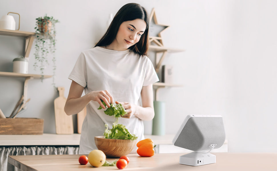 Take the smart speaker with you anywhere in the kitchen, bedroom, living room, garden, and more!