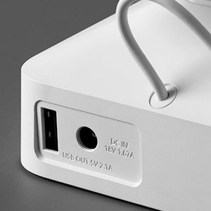 The charging stand has a USB output port to charge